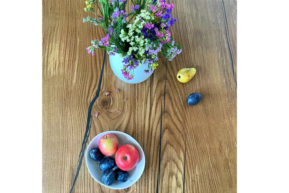 Wood is a natural product and may have significant colour variation, and whilst every effort is made to colour match as much as possible, we cannot guarantee any consistency of colour from one table to another. In case of this tabletops, exact shape and dimensions can vary as well.