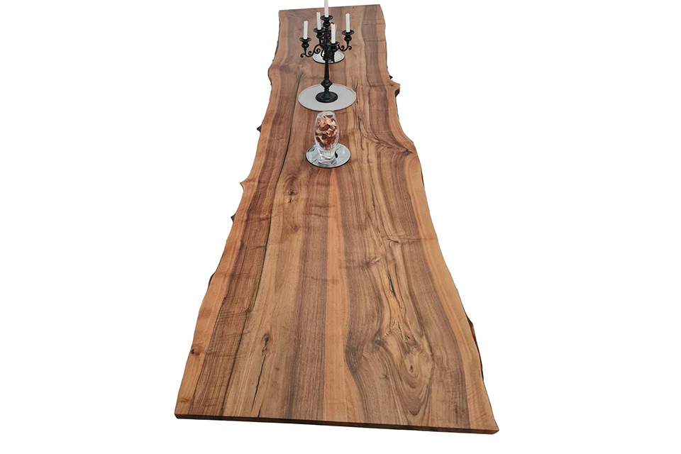 Wood is a natural product and may have significant colour variation, and whilst every effort is made to colour match as much as possible, we cannot guarantee any consistency of colour from one table to another. In case of this tabletops, exact shape and dimensions can vary as well.